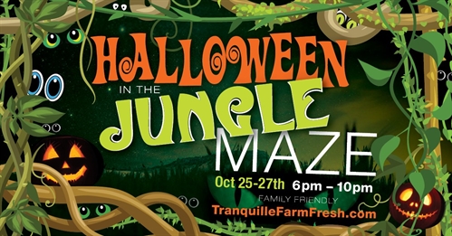 The ORIGINAL KAMLOOPS MAZE IS BACK! Tranquille Farm Fresh presents:“The JUNGLE MAZE” for 12 hours ONLY!! FAMILY FRIENDLY!Can you… DARE you… navigate and survive 8 acres of JUNGLE with just your headlamps and a handful of clues. You never know who is watching and why, with those glowing eyes in the dark! Meet characters from the Jungle Book and Jumanji in the DARK, while surrounded by 11- foot high corn and alfalfa up to your waist. Have some fun, come dressed up as a character from either movie or any jungle creature.4 months of growing for 12 hours of fun. Buy your tickets online!