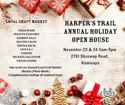It’s that time again to mark this into your calendars!We are hosting our Annual Holiday Open House! Stock up on wine and goodies for the holidays!Stop by November 23 & 24 from 11am-5pm to see our 9 wonderful vendors! We will have:Cedar SparkCreative PasstimesHarmony HillsHeavenly BlissKnots & BoltsLove G & JS DesignThe Hazel CollectionThe Vintage Spoon StudioOur fantastic local craft market runs both Saturday and Sunday from 11AM-4PM! It’s time to stock up on all your holidays wine and gifts!~Cheers~