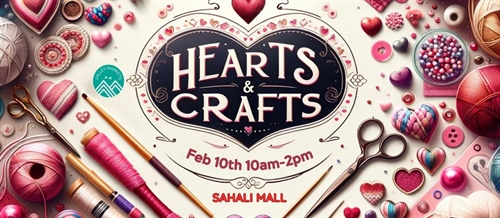 Fall in love with local at our Hearts & Crafts Pop-Up! Feb 10th, 10 AM – 2 PM at Sahali Mall. Join us for a shop-local extravaganza, featuring the best local artists, entrepreneurs, and small businesses.