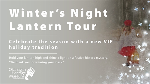 Hold your lantern high and shine a light on a festive history mystery at the Okanagan Heritage Museum. On your journey, you will meet a cast of characters that bring the past to life and take home tales and memories that last a lifetime. Merry surprises await you on this special family-friendly mystery tour. Dates: December 5, 3:00 pm – 8:00 pm & December 6, 10:00 am – 2:00 pm. Cost: By Donation ($25 suggested per group).More Information: Jen, 250.868.4836 or emaileducation@kelownamuseums.ca.