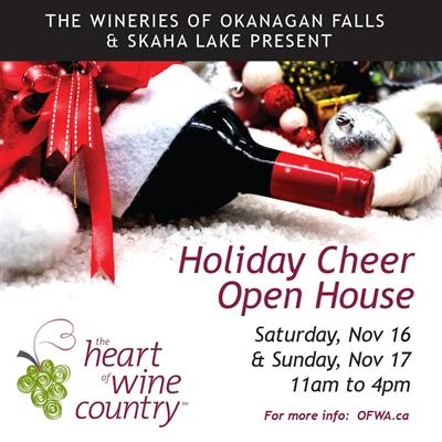 Join us, along with the other member wineries of the Okanagan Falls Winery Association, for the 7th Annual Holiday Cheer Open House. Always a fun weekend to tour Okanagan Falls!We will be open for tasting, and offering different chocolate pairings with our two fortified wines, Hart & Royal, as well as 10% discounts on any case purchases (12 bottles). Perfect time to stock up on some Christmas wine gifts.