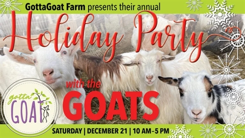 Come out to GottaGoat Farm for some goat cuddles, hot chocolate, and other goodies on Saturday, Dec 21, from 10am-5 pm. We are normally open Saturdays for visits, but this special event is FREE! We know how tough this time of year can be, so what better way to relieve some stress than hanging out with the goats! We are graciously accepting donations toward our rescued animals, but please don’t feel obligated. We’ll be mostly outside, so please dress warmly, as we are usually much colder at the farm. Carpool if you can, as parking is limited.