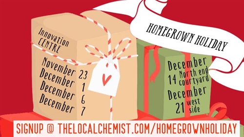 The Homegrown market is back at it this holiday season for a line up of 6 incredible Christmas markets to fill your stockings with gifts, drinks and incredible festivities! First up, November 23rd @ the Kelowna innovation centre from 10-3Then, we join forces with downtown Kelowna on December 1st ( first Sunday market ) to bring a ton of Christmas cheer outside AND inside. Vendors and small businesses will be ready to provide more gifting opportunities inside the innovation centre from 10am to 4pm and then we will be joining the downtown Kelowna crew for the Christmas tree light up!On December 6th we will be bringing back the fan favourite NIGHT MARKET at the innovation centre. From 6pm to 10pm join local vendors and smallbusinesses with a tasty beverage in hand and shop for that special someone this Christmas season!THEN let’s continue the joyous time with a follow up from the night market on December 7th with another opportunity for great Christmas gift options at the innovation centre from 10-3! December 14th is bringing us another incredible opportunity, but this time around it’s back at the North end courtyard ( 984 Laurel Ave ), Courtney Ungaro’s design space and Canoe coffee roasters. The festivities will take place inside and outside with delicious drinks from Born To Shake, fire places to cozy up to, and fantastic gift ideas for your family! And just in the ( Jolly ol St. ) nick or time, The Homegrown crew is coming to West Kelowna on December 21st! We are still finalizing the location, but no need to worry, it will be made known real soon! We would LOVE to see you all at any, or all of our holiday markets this season! Any questions or vendor inquiries, please send us a message on Facebook, Instagram or email @ dan@thelocalchemist.com