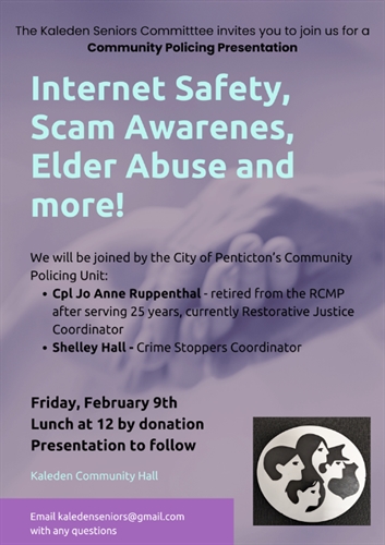 We will be joined by the City of Penticton’s Community Policing Unit: