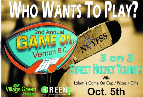 Last years exciting event took place in July, (+35 sizzler). This year to make it more comfortable, we’ve moved it to Oct. 5th (its also the NHL weekend kickoff). Lots of event tents, prizes, gifts, games and of course The Labatt’s Game On Cup! 3 on 3 Tourney, +16 and up and any any mix of female or male. There will be media, music, ex NHLers and a whole lot of fun. Sign up sheets and rules/info is available to pick up at the hotel front desk. It’s once again only $250 per team. 5-8 players per team. Our Village Green Hotel Complex has a special rate for tourney players (call 250-542-3321 and ask for details and avails, as that weekend will be a busy one so don’t delay).Deadline to sign up is 10 days prior to the event, so please don’t delay, we want to have plenty of time scheduling and set up etc.The 27 Street Grille opens at 6:30am and The Green Pub opens daily at 11am. Bring The Family! Kids are allowed in the pub until 7pm. Make a weekend out of it. The Green Pub: Friday Night is DJ Night and Saturday is a great party Band! Feel free to write us here for further details.