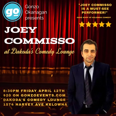 <p>Gonzo Okanagan proudly presents the comedic powerhouse Joey Commisso at Dakoda’s Comedy Lounge! Prepare for an uproarious evening as Joey, a comedic maestro with a style and perspective that resonates with audiences of every background, takes the stage. With a resume boasting performances across Canada, the USA, and Europe, including prestigious events such as the JFL Vancouver festival and Standup NBC, Joey’s international acclaim speaks volumes. Nominated for a Vancouver comedy award, Joey’s wit is sharp, his humor infectious, and his delivery flawless. Get ready to laugh until your sides ache, courtesy of Gonzo Okanagan’s unwavering support of live comedy in Kelowna.</p>