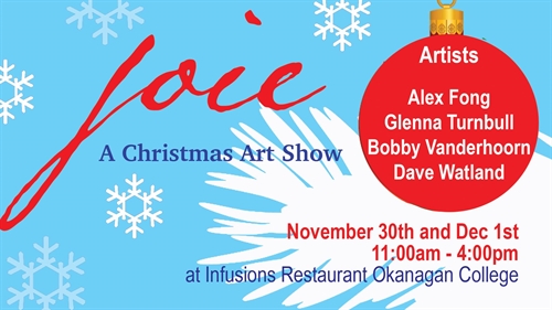 Come enjoy some art, sip some wine, snack on some delectables created by the culinary team at Okanagan College and do some Christmas shopping with artwork by Alex Fong, Bobby Vanderhoorn, Dave Watland and stained glass artist Glenna Turnbull. Bring along an unwrapped toy for Kelowna less privileged children. Donations at the door go to the Okanagan College Culinary Arts program. The event runs from 11AM to 4PM November 30 and December 1.