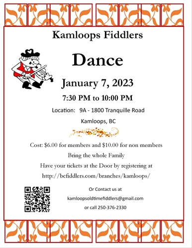 <p>Cost: $6.00 for members and $10.00 for non members<br />Bring the whole FamilyHave your tickets at the Door by registering at<br />http://bcfiddlers.com/branches/kamloops/</p>