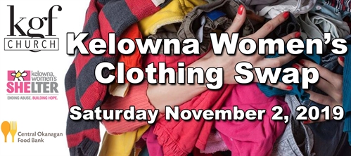 Kelowna Women’s Clothing Swap – Fall 2019Fall is upon us, time to sweep through your closet and pass along some items while gathering new (to you) ones at the same time!DATE: Saturday, November 2nd, 2019TIME: 11:30am – 2:30pmLOCATION: Kelowna Gospel Fellowship Church, 3714 Gordon Dr, Kelowna, BCDETAILS: This is a clothing swap for adult women that also serves as a fundraiser and donation collection for the Food Bank!ADMISSION: Please bring a minimum of 2 (TWO) non-perishable food items OR $5 for the Food Bank. A list of the Food Bank’s most needed items will be posted on this event page. You must also bring a minimum of 10 (TEN) CLEAN, UN-TORN, WEARABLE clothing items. Acceptable items include ALL sizes of women’s (AGE 19+) clothing (including bras, coats, swimsuits, etc), clothing accessories (belts, scarves, purses, hats), and shoes. Please do NOT bring underwear, jewelry, children’s items, men’s items, or anything that would need to be cleaned or fixed.Hangers are NOT needed.All leftover items will be donated to The Kelowna Women’s Shelter Thrift Store.HOW IT WORKS: You MUST bring your items between 11:30am and 12:45pm. You should be in line by 12:30pm to ensure you make it in on time. If you show up later than this there is a chance you may be denied.You will be asked to place your items on the tables indicated by size. They will be placed in the main room by size/category and then you will be asked to wait outside the room until approximately 1pm before everyone will be welcome back to pick out items. There will be seating available for you to hang out inside the church while you wait. There is a bathroom available but you are encouraged to bring a mirror and clothes you are comfortable trying things on-top of to save time. Or just take things home that you think will fit. DO NOT GET DOWN TO YOUR UNDERWEAR IN THE SPACE, WEAR LEGGINGS OR A SKIRT AND A TANK TOP.Please bring your own bag to take items home. As long as you brought the minimum to get in, you are welcome to take as much as you like (to a reasonable degree, no large luggage bags/hockey duffle bags, etc).Because this is a busy event, we do NOT allow baby strollers/carriages. If you bring your children with you, you must keep babies wrapped to you, and young ones monitored closely. An event of this kind is only possible with the generous time and space donated by the Kelowna Gospel Fellowship Church and volunteers. Thank you!!Please contact me with any questions, comments, concerns, or if you would like to help :) I am ALWAYS looking for more volunteers!This is a free event, no buying/selling allowed.Cheers,Stephanie Newhook