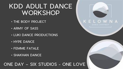 <p>This January, SIX amazing Kelowna studios are coming together for a day of dance! Come try out something new this New Year.There are so many amazing adult dance groups and studios in Kelowna. KDD is here to bring community between those groups and to show support to each one. After all, we all share one common passion, DANCE!On January 19th, 2020, we will be hosting our very first collaborative DANCE WORKSHOP!We have 6 amazing studios coming together and offering 6 awesome open level classes. Come try something new in 2020!—————————————————————————SCHEDULE (LOCATION: ROTARY CENTRE FOR THE ARTS):Salloum Rehearsal Hall9:00 am – 10:00 am – BODY DANCE PROJECT – Contemporary Class10:10 am – 11:10 am – ARMY OF SASS – Heels Class11:20 am – 12:20 pm – LUKI DANCE PRODUCTIONS – Tap and Yoga Class *LUNCH BREAK*1:30 pm – 2:30 pm – HYPE DANCE – Hip hop/Commercial2:40 pm – 3:40 pm – FEMME FATALE DANCE – Sensual Healing Floor Work3:50 – 4:50 pm – SHAKHAN DANCE – Bachata—————————————————————————TICKET PRICES:FULL DAY PASS (6 CLASSES) – $50.00 with this option you can attend as many classes as you would like!HALF DAY PASS (3 CLASSES) – $30.00 with this option you can attend up to 3 classes throughout the day. You select the classes!*There will be a limited amount of single class passes available for $15.00. However, we encourage you to try out as many classes as possible. Please reach out to KDD for possible single class passes.**This event is for Adults only, all dancers must be 18 years or older.*</p>