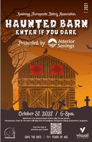 Our 13+ – KTRA’s 1st Annual Haunted Barn Presented by Interior Savings – from 6-8pm on Sunday October 31, 2021 – Admission is by pre-purchased tickets only – $10 per person – purchase your tickets here:https://www.ktra.ca/