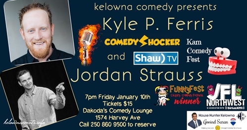 Come out for a serious night of not so serious laughs at Dakoda’s with Kyle P. Ferris and Jordan Strauss. This is a match made in comedy heaven. Kyle and Jordan are the Ying Yang Twins of stand up. Kyle has performed on the infamous Comedy Shocker and Kam Comedy Fest. Jordan has performed on Just for Laughs Northwest and is the winner of the Calgary Funny Fest. This is your chance to see two headliners on one show. This is a show for real comedy fans. Two performers at the top of their game.