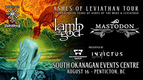 Metal titans Lamb of God and Mastodon announce the co-headlining Ashes Of Leviathan Tour at the South Okanagan Events Centre on August 16th,2024.