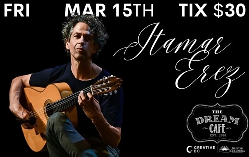<p>Itamar’s music holds a depth and sensitivity that touches listeners deeply. It blends the delicateness of Middle Eastern music, the freedom found in jazz and the passion of flamenco, creating a unique sound all his own. Recipient of the 2014 ACUM Prize for Special Achievement in Jazz and the prestigious 2014 Landau Prize, Itamar Erez is an internationally renowned composer and guitarist who has shared the stage with such musicians as Omar Faruk Tekbilek, Jean-Louis Matinier, Zohar Fresco, and others. See him live at The Dream on March 15th. <br />Dinner available before the show, served from 6pm – 9pm.</p>
