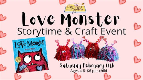 <p>We invite you to join us to listen to ‘love’ stories to get ready for Valentine’s Day next week and to make our very own love monster craft to take home!<br />There are four time slots to choose fromThe cost is $6 per child and covers all craft materials. This event is recommended for ages 4-8, and parental assistance with the craft is suggested.<br />You can register on our website through the events menu tab or click on the ticketing link below<br />Tickets<br />onceuponabookstore.ca/products/love-monster-storytime-and-craft-event</p>
