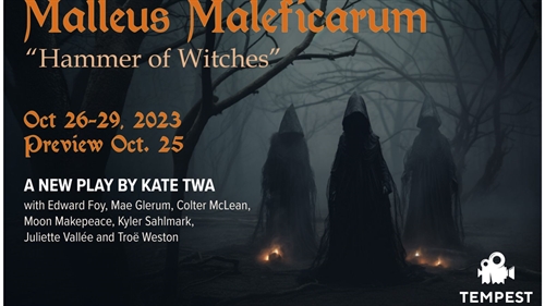 <p>Joan of Arc, The Wyrd Sisters from MacBeth, Abigail Williams from The Crucible, and an outspoken 15th century housewife, face off against persecution in this deadly time of “othering”. A charismatic witch hunter defends the Malleus Maleficarum, a violent and sadistic instruction manual describing how to detect, prosecute, torture, and often execute people accused of witchcraft. Based on historical fact, the play Malleus Maleficarum: Hammer of Witches will look at the how the stories we tell can often perpetuate the historical and ongoing persecution of people who are simply different. <br />Guests will be able to enjoy local beverages from Hugging Tree Winery, Mayhem Winery, Giant Head Winery, Slackwater Brewing and Cannery Brewing. A selection of non-alcoholic options are available as well. <br />Tickets for the show are $30 (or $25 for Tempest’s Patreon Members). An Open Dress Rehearsal Preview performance on Wednesday, October 25 has a reduced ticket price of $20. The performance covers mature subjects, therefore 16+ is recommended. <br />Doors open at 7:00pm. Show starts at 7:30pm.</p>