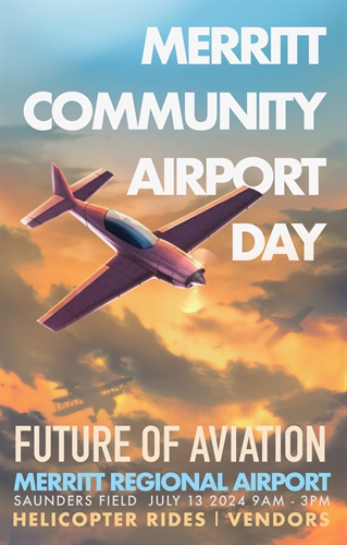<p>Meet your fellow pilots, airplane enthusiasts and the people of the Nicola Valley on July 13, 2024 at our annual Fly-In at Merritt Regional Airport “Saunders Field” in Merritt, BC, Canada.The Community Airport Day event brings together pilots and planes from all around the province to celebrate the skies with us. Onsite we will have helicopter rides ($50), classic car show, food vendors, history exhibit, paper airplane contest, Radio Control Aircraft Club, City Service Clubs, Master of Ceremonies, regional and local dignitaries and more.</p>