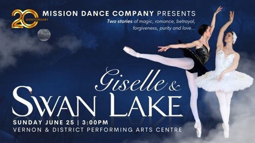 <p>There is a reason Swan Lake has remained the world’s most beloved classical ballet for more than a century. It is an achingly beautiful fairytale told through unparalleled virtuosic choreography and Tchaikovsky’s indelible score that has long surpassed the test of time.Kelowna’s Mission Dance Company makes an appearance in Vernon this season with one of the most popular and timeless ballets ever staged. This beautiful and powerful production, adored by children and adults alike, tells the story of young Prince Siegfried who falls in love with the White Swan, Odette.An evil sorcerer, Rothbart, captures victims and puts them under a terrible spell that transforms maidens into swans. Rothbart has power over all the swans and can direct them as he pleases, especially Odette. The only thing that can break the spell is true love and Rothbart will do anything in his power to stop it.We welcome you to join us at the Vernon & District Performing Arts Centre on Sunday June 25th, 2023 at 3:00pm for this ‘must see’ presentation and help us bring the magic, romance, and love of this epic ballet to life.</p>