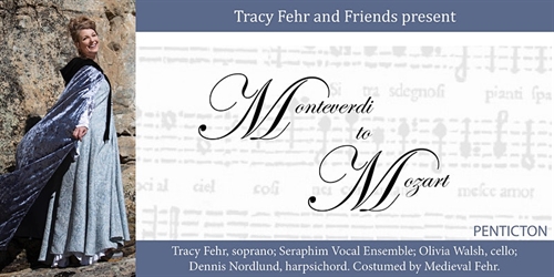 Join us: live music and period costumes designed by Medieval Fehr bring to life the composers and musicians of the Renaissance and Baroque!About this eventPlease join us for a musical journey from the time of Monteverdi to Mozart. Enjoy beautiful solos, duets, quartets, and much more! Be transported by Tracy Fehr’s soaring soprano, Seraphim Vocal Ensemble’s delicate harmonies (Tracy Fehr, Heather Allen, Olivia Walsh and Colin Cross), Olivia Walsh’s warm cello, and Dennis Nordlund on harpsichord.Musicians will be dressed in period costumes designed by Medieval Fehr, bringing to life the composers and musicians of the late Renaissance and Baroque eras.Come and meet Claudio Monteverdi (Colin), Francesca Caccini (Tracy), Laura, Lady of Ferrara (Heather), Anna Bon of the Ospedale della Pieta (Olivia) and Wolfgang Amadeus Mozart (Dennis).Penticton Concert Location:St. Andrew’s Presbyterian Church, 397 Martin St.Doors open at 6:30pm. Concert starts at 7pm. Presale tickets only.*Please note that all BC health measures that are current on the day of the event will be followed. At the moment, this means that masks/vaccine passports will not be required. We will update this page if health measures change. Thank you in advance!Please email Tracy Fehr: tfehr@tracyfehr.com if you have any questions!Concert ProgrammeLamento della ninfa – MonteverdiSweet nimphe, come to thy lover – MorleyWhen loe, by break of morning – MorleyWhile joyful springtime lasteth – YoullMaria Dolce – Francesca CacciniMass for 3 Voices (Kyrie & Gloria) – William ByrdSonatas for harpsichord (1&3) – Anna BonJesus soll mein erstes Wort – BachIl bianco e dolce cigno – ArcadeltAdieu, sweet Amaryllis – WilbyeCello Suites (prelude, suite 1) – BachJubal’s lyre – HandelExultate Jubliate – MozartLaudate Domine – Mozart