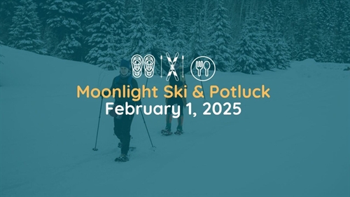 Experience the enchantment of skiing or snowshoeing under the stars, and after, gather for a cozy fireside potluck dinner where everyone is invited to share good food and great company. Let’s make it a night to remember!