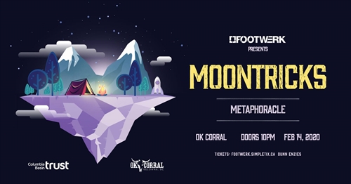 <p>on sale now – http://footwerk.simpletix.caor visit DunnEnzies Pizza Co. on Ellis for hard copies in JanMoontricks is back! From rural beginnings to global festival stages, this humble duo is now taking on the world with their love of folk, blues, and electronic music. Dazzling audiences with their infectious vibe and unmistakable rhythm, Moontricks are clear proof that originality and passion can spark a creative odyssey.Thanks to Columbia Basin Trust for helping fund Moontricks’ Kootenay Winter Tour. Join us as we continue to celebrate 10 yrs of Footwerk Events shows in the #okanagan. Vibe by: YOU! Grab tickets, bring your friends, get weird. DRESS THEME: Western vs festivalDO NOT BRING FLOW TOYS. thanks- – – – – – – – – – – – – – – – – – – – – – – ITINERARY OF FUN — MAIN –0130 – 0215 — MetaphOracle1200 – 0130 — Moontricks LIVE1130 – 1200 — MetaphOracle1000 – 1130 — Mr M</p>