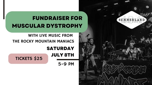 <p>Presented by the Summerland Apple Barn, a rock concert and charity fundraiser with the Rocky Mountain Maniacs.The Rocky Mountain Maniacs are a rock and roll band playing everyone’s favourite tunes from the 70’s onward, pumping out some hard hitting originals along the way.Tickets are $25 and available online and at Summerland Cider for purchase. Casual lawn seating, bring your own chair or blanket! We’ll also be flippin’ some burgers and rollin’ some hotdogs, so come hungry.All ticket sale & bbq profits will be donated to the charity.</p>