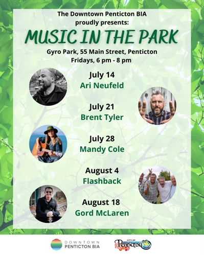 <p>Spend your Friday evenings from 6 pm to 8 pm in Gyro Park this summer, listing to incredible music from some of your favourite local musicians. Friday, July 28, 2023 • 6PM to 8PM: Mandy ColeFriday, August 4, 2023 • 6PM to 8PM: FlashbackFriday, August 18, 2023 • 6PM to 8PM: Gord McLaren</p>