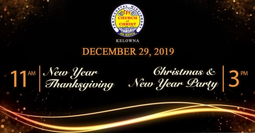 Calling all Kelowna members and friends! Join us this Sunday, December 29, 2019 as we celebrate our New Year Thanksgiving as well as our Christmas & New Years Party! Let’s end the year right and dedicate this last Sunday of 2019 to the Lord! God bless you all and see you there! Don’t forget to bring your exchange gifts and invite your friends!#pmcc4wkelowna