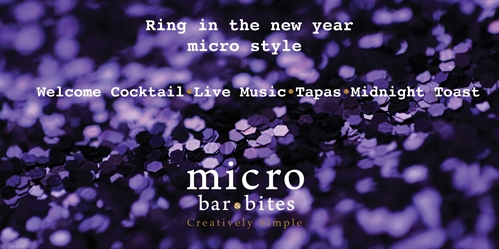Ring in the New Year with your friends at micro!Tickets are available exclusively at EventBrite.Your New Year’s Eve ticket includes•Welcome cocktail•Delicious tapas by Chef Chris Braun served throughout the evening•A glass of sparkling wine served at midnight•Noisemakers & party favours•Live music all night long by local duo ‘Mabaleka’Cash bar available throughout the evening featuring BC and International wines, creative cocktails and micro brews