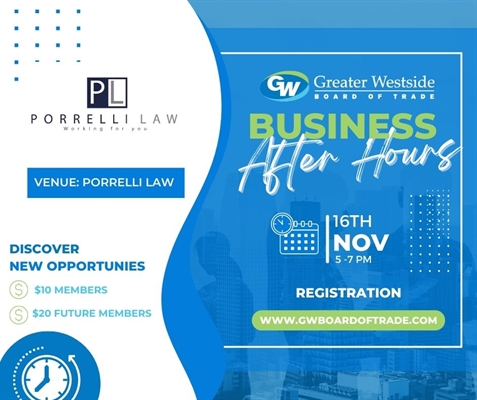 <p>Join us on Thursday, November 16 from 5-7pm at Porrelli Law for a great evening of networking, local food and drink and some great prizes.<br />Advance registration is recommended.</p>