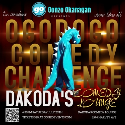 Prepare for an unforgettable night of side-splitting laughter! Join us for the Ogopogo Comedy Challenge, proudly brought to you by Gonzo Okanagan, at Dakoda’s Comedy Lounge on Saturday, July 20th, at 6:30 pm. Witness Kelowna Comedy’s top talent in an epic battle of wits, as they deliver their sharpest jokes and funniest punchlines to win the ultimate prize. Our comedians have been honing their craft, perfecting every punchline and practicing their delivery to ensure an evening filled with non-stop hilarity. Don’t miss this chance to see the best of Okanagan comedy, featuring eight hilarious comedians who will leave you in stitches. Special thanks to Gonzo Okanagan for their generous support in making this event possible. Be there for a night of pure comedic brilliance!
