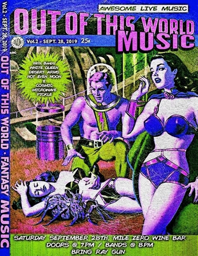 <p>live @ mile zero wine bar is music from out of this world. featuring:Desert Arms-Heavy Metal/punkhttps://desertarms.bandcamp.com/releasesWhite Queen (Nelson): Old school punk & metalhttps://whitequeen.bandcamp.com/releasesNot Even Noon-prog rock you can dance tohttps://www.notevennoon.com/A Cosmic Microwave Pickle-Compost hardcorehttps://m.facebook.com/Maxamillionpegasus/</p>
