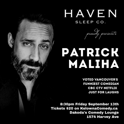 <p>Get ready for an unforgettable night of laughter as Haven Sleep Co. proudly presents Vancouver’s favorite stand-up comic, Patrick Maliha, live at Dakoda’s Comedy Lounge on Friday, September 13th at 8:30 PM.Patrick Maliha, a comedic powerhouse with an impressive resume that includes comedy specials on CTV, The Comedy Network, and CBC, as well as holding the world record for Most Impressions Under a Minute, is set to deliver a performance that will leave you in stitches. Known for his sharp wit and unique comedic style, Patrick blends hilarious anecdotes, spot-on impressions, and his trademark humor to create a show you won’t want to miss.As a writer for the hit Netflix series “Mystery Science Theater 3000,” Patrick’s comedic genius has been recognized internationally. Now, he’s bringing that talent to the stage for one night only.Dakoda’s Comedy Lounge, nestled in one of Vancouver’s most charming neighborhoods, is the perfect backdrop for an evening of non-stop laughter. Whether you’re a longtime fan or new to Patrick’s comedy, this is your chance to experience his brilliance live.Tickets are limited, so gather your friends and secure your spot today for a night of comedy that promises to be nothing short of spectacular. Don’t miss out—Patrick Maliha presented by Haven Sleep Co. is the must-attend event of the season!</p>
