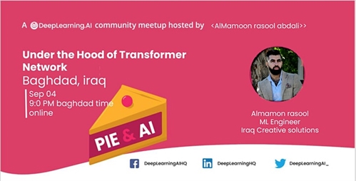 Pie & AI is a series of DeepLearning.AI meetups independently hosted by community groups. This event is hosted by Almamon Rasool Abdali. Special thanks to their support!In these event we will break down the transformer network in detail explaining the fundamentals and the implementation of the transformer network with explaining of it use in different area and will give a coding walk-through as example for implementing the transformers networkEvent Agenda & Speakers:9:00 – 9:10 opening9:10 – 9:55 presentation of the main topic9:55-10:15 code walk-through10:15 – 10:30 AMA (Q&A) session