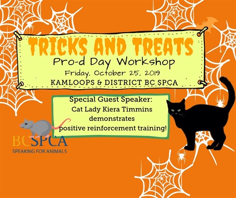 It’s time for tricks and treats at the Kamloops SPCA! Kids (born 2008-2011) are welcome to join us for a full-day workshop filled with fun crafts, guest speakers, learning games, animal-themed activities and, of course, time with some of the animals in the shelter.This pro-d day workshop runs from 9:30 a.m. to 3:30 p.m. (drop-off begins at 9:00 a.m. and pick-up extends to 4:00 p.m.). The cost to register is $35. Registration is now live at spca.bc.ca/workshops for a limited number of spaces!