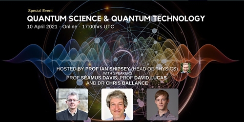 <p>‘Quantum Science & Quantum Technology’Leading international researchers in the field of quantum science and quantum technology will share their latest findings.Hosted by Prof Ian Shipsey (Head of Physics) with three fantastic speakers: Prof Séamus Davis, Prof David Lucas and Dr Chris Ballance.After a quick introduction by Prof Shipsey, each will talk for about 15 minutes sharing their latest research and what is next for the world of quantum science and technology.Guests will have plenty of time to ask questions to the panel.This event is for alumni and general public. Everybody is welcome to join to this free event.Please register soon to avoid disappointment, as places are limited. Feel free to share with friends so they can register too.Registrants will receive an email either on Friday 9th evening or lunch time on the 10th, with the link to join us for this event via Zoom. Please check that you type in your email correctly. We KINDLY request you do not share this link without letting us know in advance, as this would mean that those who have registered may be left out and unable to join on the day. Best way is for anyone interested, to register.If you are a University of Oxford alumnus, please complete the relevant fields on the registration form. If you are not, please just write ‘NA’. The same applies for any questions on the form that you would prefer not to answer.Some people find they need to clear cache or change browser to be able to book. Please try this if you have problems, or contact us and we’ll be glad to help.We look forward to seeing you then!</p>