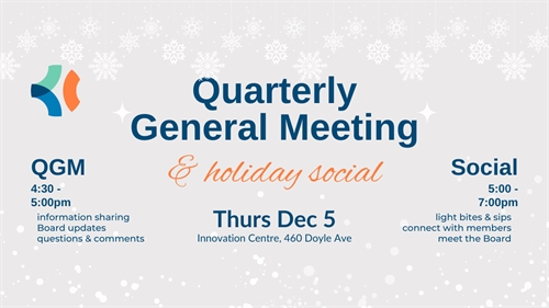 <p>The Board wants to celebrate with you! Join the Kelowna Chamber Board of Directors for an evening of holiday cheer at the Innovation Centre. At 4:30pm, Board Committee Chairs will provide a brief update of their committee’s progress in 2024. <br />The Quarterly update will be followed by a holiday mixer hosted by the Kelowna Chamber Board. Remember to bring your business cards and get ready to connect with the Okanagan’s business community. <br />Ages 19+</p>