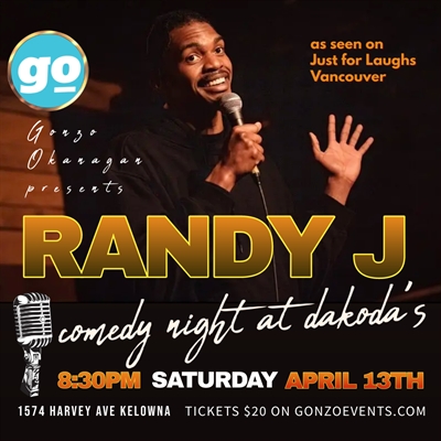 <p>Get ready to laugh until your sides ache! Gonzo Okanagan brings you the uproarious Randy J live at Dakoda’s Comedy Lounge on the electrifying night of Saturday, April 13th. Hailing all the way from the vibrant shores of Guadeloupe, Randy Jernidier is set to ignite the stage with his dynamic humor that has rocked audiences from Vancouver to Montreal and even across the seas to San Francisco. A seasoned performer, Randy J has left crowds roaring with laughter at the prestigious Just For Laughs Festival. Don’t miss out on an evening filled with gut-busting laughter and unforgettable moments, all made possible by the generous support of our sponsor.</p>