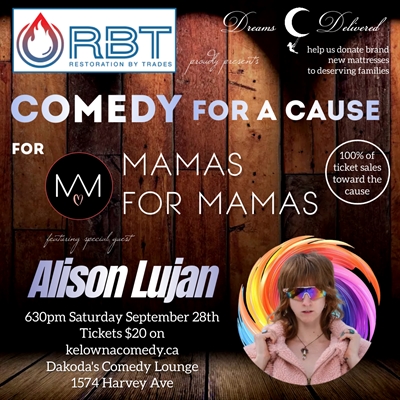 <p>Join us for a night of laughter and giving back with “RBT Restoration by Trades presents Comedy for a Cause for Mamas for Mamas!” This exciting event is happening on Saturday, September 28th, at 6:30 PM at Dakoda’s Comedy Lounge.Prepare yourself for an evening filled with fun as we bring you the hilarious Alison Lujan as the feature act, alongside a fantastic lineup of other top-notch comics. They’ll be serving up the laughs, and we’ll be serving up the good vibes—all for a fantastic cause!100% of ticket sales will go directly to Mamas for Mamas, a wonderful organization that supports mothers and caregivers in crisis by providing ongoing support to help them move forward.A big shoutout to RBT Restoration by Trades for making this event possible and showing their commitment to the community!So grab your tickets, bring your friends, and get ready for a night of comedy that makes a difference! See you there!</p>