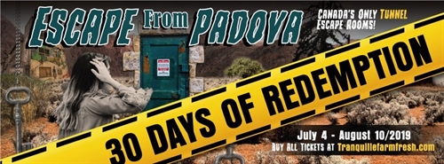 Last years Escape Room “Escape from Padova” is back for a few weekends only!! We have put in a lot more clues, shortened the time a little, and dropped the price so that if you were not able to crack the room last year, this is your chance to make it to the end!If you did not make it out last year this is your opportunity to have fun with your friends before we take the room down and build our next Escape Room “The Enigma Women” starting in Sept.Buy all your tickets online on our website www.tranquillefarmfresh.com