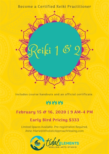 <p>You are invited to access and explore energy healing in this exciting 2-day intensive training.Reiki 1st Degree:? Introduction to Reiki? History and lineage? Hand positions for self-healing and treating others? Receive the 1st Degree healing attunementReiki 2nd Degree:? Receive the 2nd degree healing attunement? Receive, learn and be attuned to 3 Sacred Reiki Symbols? Explore how to use these symbols to help others and enhance your daily life? Learn and practice Distance Healing? Learn and practice Byosen Scanning? Receive a Reiki treatmentPLUS:You will receive:? A Certificate of Completion? A copy of “The Reiki Bible” by Elenor McKenzie? An opportunity to attend Reiki Shares for ongoing learning and developmentRegister at Anne-Marie@WholisticApproachHealing.comSCHEDULE:Saturday February 15th from 9:00am to 4:00pmandSunday February 16th from 9:00am to 4:00pm? $333 Prepay (until February 10) OR? $397 (Pay $100 non-refundable deposit with balance due before training starts)Anne-Marie Pitre is a Certified Usui Reiki Master/Teacher.See bio at www.wholisticapproachhealing.com</p>