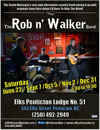 Keremeos’ very own alternative country recording artists… Rob n’Walker are playing at the Penticton Elk’s Lodge! Sit back and relax with friends and neighbors or hit the dance floor – either way it’s all GOOD!