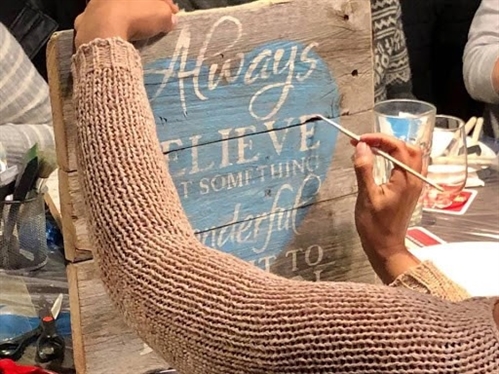 Join us for a fun night of painting a beautiful handmade reclaimed wood sign at The Vibrant Vine – Kelowna. A glass of wine and charcuterie is included!Please note: Will be held in the Lakeview Terrace RoomEnjoy creatively making your sign using:A Pre-Cut Stencil Saying and Design (50+ choices)Acrylic Paints & Stencil BrushesStencil Utensils3 Hours of InstructionWe offer different ticket prices based on sign board options:Bring Your Own Board – $55.00 (Ticket includes a stencil of your choice, paints, brushes and your seat at the event.)Signature Gray Reclaimed Wood – $85.00.**A glass of wine and charcuterie is included!!**