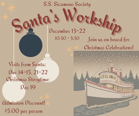 From December 13th to December 22nd, it will be Christmas aboard the Sicamous from 10:30am to 3:30pm every day.Celebrate the holidays with us by exploring the Queen of Okanagan Lake while she is all decked out for the season with our magical KVR Model Train and Christmas decorations. This Christmas at the S.S. Sicamous we are creating a fun and educational holiday experience for family and friends to enjoy. The museum will be open for self-guided tours.