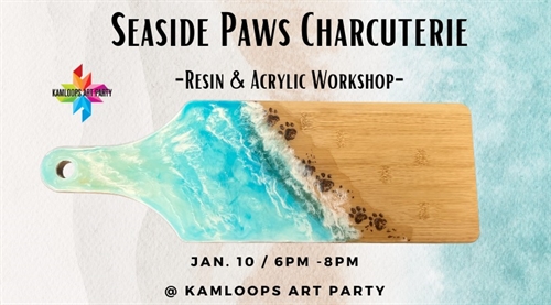 <p>Dive into creativity with our Seaside Paws Charcuterie Workshop! Join us for a delightful evening of art, where you will craft your own unique charcuterie board adorned with charming paw prints and beachy themes using acrylic and resin techniques. <br />Event Details: <br />Date: January 10th <br />Time: 6:00 PM – 8:00 PM <br />Location: Kamloops Art Party <br />What to Expect: <br />Guided by our incredibly skilled artist, you’ll learn the art of designing playful paw prints and coastal scenes, and applying resin to create a beautiful, functional charcuterie board. Whether you’re a beginner or an experienced artist, this workshop promises a fun and enriching experience. <br />Price: $69 per ticket <br />Includes: <br />A wooden charcuterie board <br />Acrylic paint & brushes <br />Resin materials & application <br />Professional artist instruction <br />Aprons provided <br />Age Requirement: Suitable for ages 14 and up, making it a perfect activity for individuals, friends, and families alike. <br />Limited spaces available, so grab your tickets now to secure your spot in this popular workshop!</p>