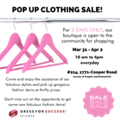 <p>Dress for Success Kelowna provides their clients access to programs, services, and tools that will help them achieve economic advancement. They support women across the Okanagan by providing professional attire and career programs including pre-employment, job retention, and career advancement strategies, and support for women seeking new or improved employment. Further empowerment is provided to their clients through mentorship support and leadership programs aimed at continuing personal and professional development. The provision of clothing, while only one aspect of the work Dress for Success does, is the corner stone of their activities and what they are most known for. “Women can come to the Dress for Success boutique where our staff and volunteers will get them interview or employment ready with appropriate attire.” Says Lori Stevenson, Executive Director. “Our clients are treated to a personalized dressing and pampering experience that leaves them feeling confident and beautiful and ready to take on the world.”The new and gently used clothing that Dress for Success outfits their clients in is provided through the generous support of donors. “Our community is incredibly giving!” says a Boutique Stylist volunteer. “We are bursting at the seams, in both our boutique and our storage space – all incredible clothing, many designer and brand names, all in great condition.”This three day sale will provide much needed funding to support the organization’s programming including career services and personal and professional development workshops. It will reduce some of the fall/winter inventory, making it easier for to do the seasonal stock changeover. The sale will also keep the inventory fresh for the clients, making room for new items to be incorporated. You can shop this Clothing Pop-Up Sale Mar 31 – Apr 2 from 10am – 4pm each day. Dress for Success is located at #214 – 1771 Cooper Road – in the mini mall on the corner of Enterprise and Cooper. They are on the second floor, directly above San’s Latin Market. For more information on Dress for Success and its programs, please visit www.dfskelowna.org</p>