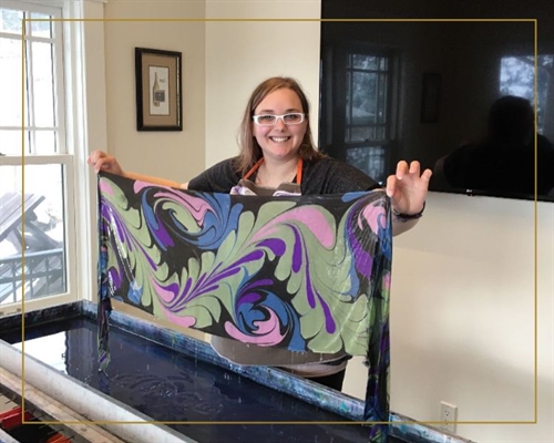 <p>Join us at Noble Ridge Winery for a 2 hour workshop. <br />We bring the beautiful, ancient art of water marbling to the 21st century by inviting you to be the artist. Come and make your own water marbled silk scarf. Each workshop begins with a demonstration. Then each artist chooses their colours and floats the paint one drop at a time on the surface of the water, then uses marbling combs, rakes, or stylus to create the design of their liking. If you can sprinkle cheese on a pizza, or write your name with a pencil you can make magic with us! <br />Tickets include all supplies to make your silk scarf and a glass of wine from Noble Ridge Winery. Non-alcoholic options available.</p>