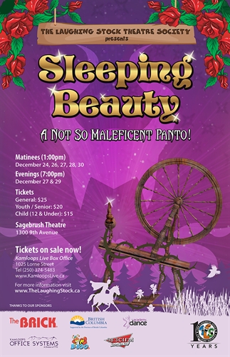 CLOSED Christmas day! Sleeping Beauty – A Not So Maleficent Panto!By Vance Schneider, Bruce Visser and Tom FoxSagebrush Theatre – December 24 -30, 2021TICKETS ON SALE NOW!Kamloops Live Box Office1025 Lorne Street, Kamloops, BCTel: (250) 374-5483 – Toll: 1-866-374-5483www.kamloopslive.caDates and Times– Matinees: Dec 24, 26, 27, 28, 30. Curtain 1:00pm– Evenings: Dec 27, 29. Curtain 7:00pmTicket PricesPlease Note: All tickets are RESERVED SEATING.– General Ticket: $25.00– Student / Senior $20.00– Children (12 & Under): $15.00COVID-19 Restrictions are in place.Please visit Kamloops Live Box Office for details.