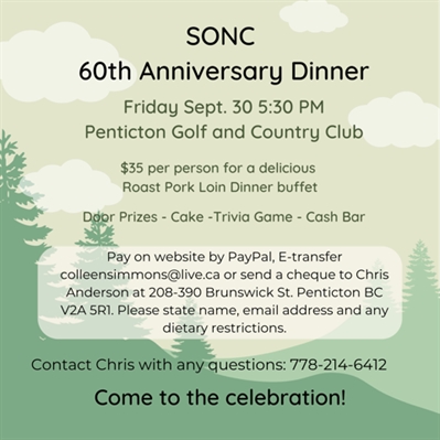 The South Okanagan Naturalists’ Club (SONC) is celebrating 60 years of nature conservation, education, and appreciation of the natural world with a dinner and retrospective evening on Sept. 30 at the Penticton Golf & Country Club.