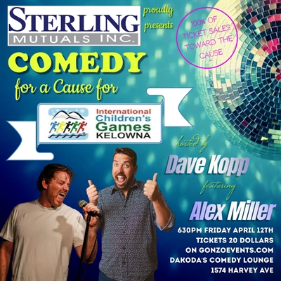 <p>Get ready to laugh your socks off at Sterling Mutuals Inc.’s uproarious event, “Comedy for a Cause for International Children’s Games Kelowna”! Hosted by the charismatic David Kopp, this night promises non-stop hilarity as Kelowna Comedy’s finest comedians take the stage, with a side-splitting special performance by the one and only Alex Miller. Prepare for a comedy extravaganza unlike any other, where every chuckle counts towards a greater cause—100% of ticket sales will directly support the International Children’s Games Kelowna. Join us for an evening of laughter, camaraderie, and making a difference in the lives of children worldwide! Thanks to our generous sponsor, Sterling Mutuals for making this show possible.</p>